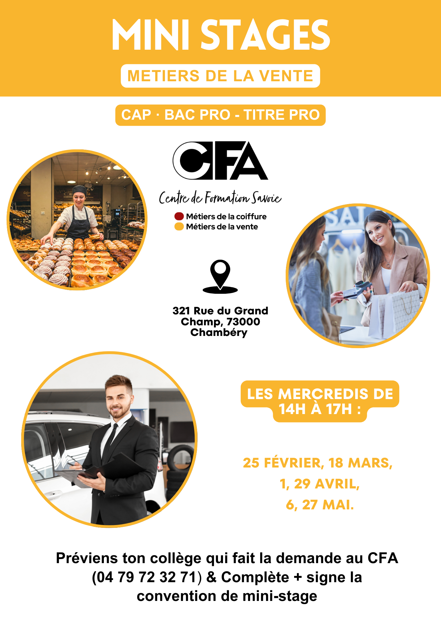 ➡️Préviens ton collège qui fait la demande au cfa -> complète et signe la convention de mini-stage